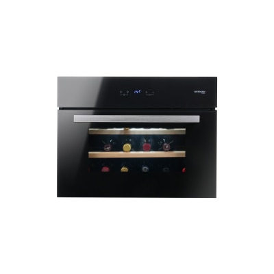 存酒數量達24瓶,雙電子恆溫器,精準控制5-20°C存酒溫度,防UV雙層玻璃門,阻隔紫外線照射,3層抽拉式櫸木層架,穩固、防震、方便,輕觸式面板及清晰LED顯示屏,顯示存酒溫度,下拉式玻璃門配備靜音防撞氣撐,標準嵌入式尺寸,毋須更改廚櫃