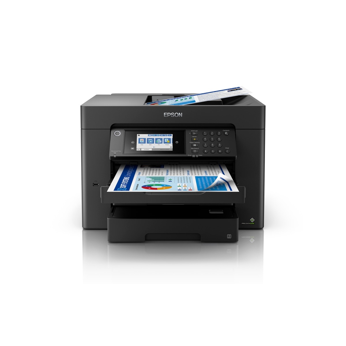 WF-7841專為快速發展的業務而設計,可滿足高達13“ x 19”的大幅面打印,自動雙面打印,複印,掃描和傳真, 50頁後進紙匣和500頁大容量紙張。