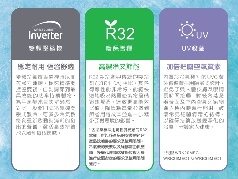 WRK35MEC1 1.5匹變頻窗口式冷氣機