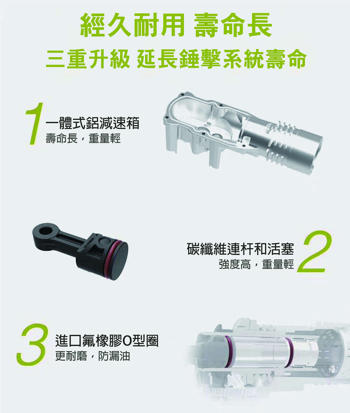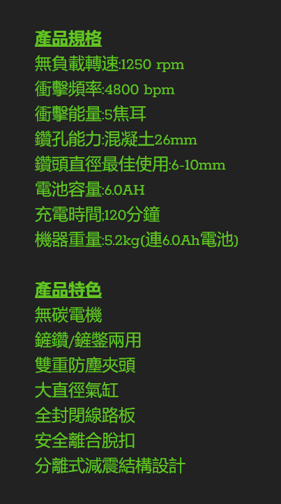 威克士WU399 20V 26MM鋰電無碳刷油壓鑽, 三功能:錘鑽、平鑽、鏟鑿,電子脈衝,雙重防塵夾頭,安全脫扣技術,分離式減震結構設計,大直徑氣缸設計,全封閉線路板.