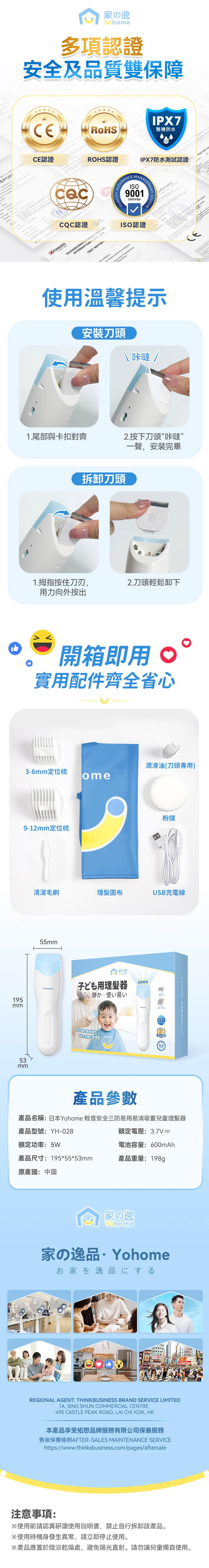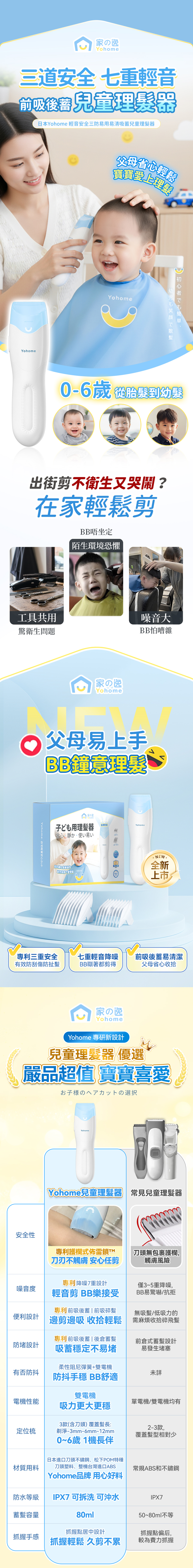 YH-028 輕音安全三防易用易清吸蓄兒童理髮器