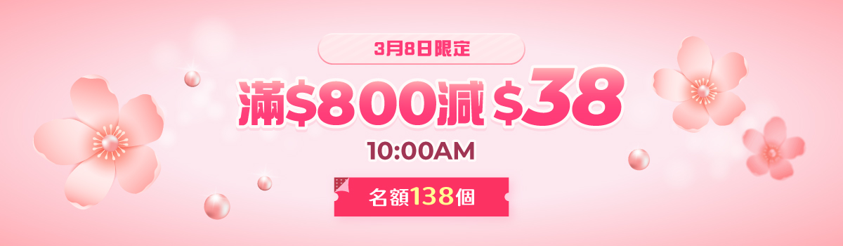 - All in 系列 - 3.8快閃優惠碼將在3月8日早上10點開始發放,名額138個。