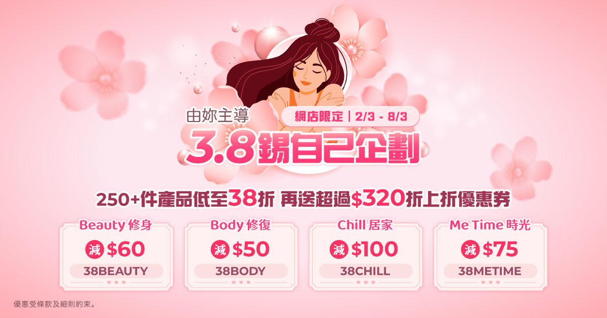 今個3.8,為自己發表寵愛宣言。從精緻妝容、身心療癒,到愜意空間和沉浸式娛樂,妳的每個日常,都由妳定義。